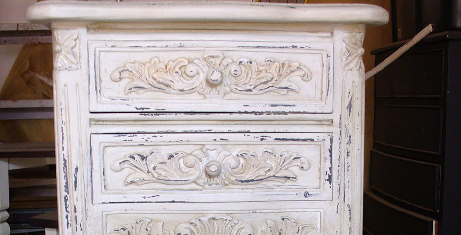 This drawer has 2 techniques applied to it, distressed and dry brushed with gold. It is a great way to give your bedroom a vintage feel.