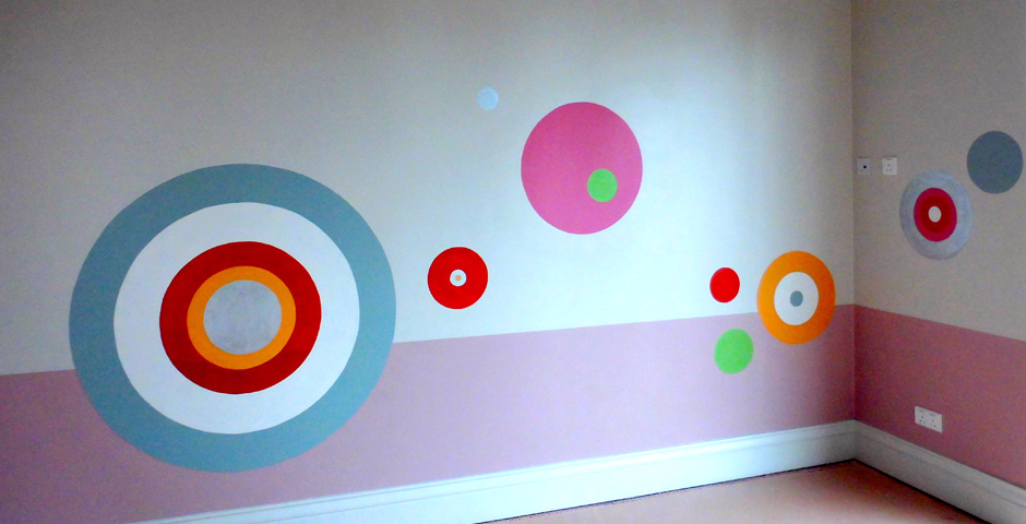 This was completed by using a compass and freehand. Bright colour combinations used in this room bring a more vibrant appeal.